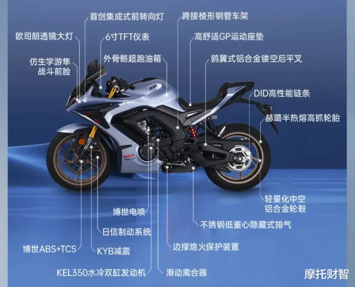 新车陆续 322cc 水冷双缸能源,标配博世 ABS+TCS、KYB 减震、日信制动、DID 链条与赫璐半热熔胎,跨接棱形钢管车架 + 鸥翼式铝合金后平叉,操控与安全拉满。外不雅禁受仿生学游隼前脸,6 寸 TFT 样貌、创举集成式转向灯,颜值与科技感兼具。