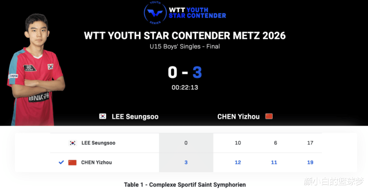 韩国15岁的小将李承洙名声很响,他是本年三月在WTT新加坡青少年大满贯U15男单冠军,亦然旧年U15世青赛男团项策划第三名,2025年多哈青少年挑战赛上他一东谈主包揽了U15/U19两个冠军。