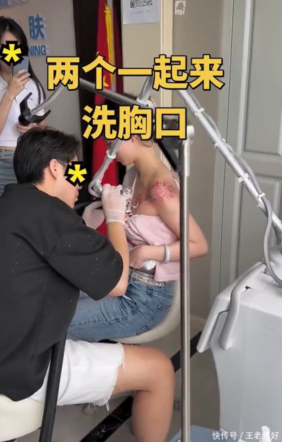 俩女子看起来齐很年青,最多也便是20岁出面的步地,两东谈主齐在胸口有纹身,而如今她们则是为了洗纹身而来。