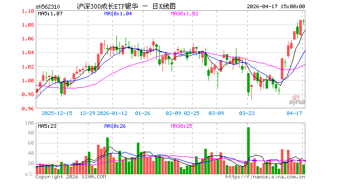 4月17日,沪深300成长ETF银华(562310)跌0.18%,成交额1917.53万元。当日份额减少600.00万份,最新份额为6.17亿份,近20个交以前份额减少1800.00万份。最新钞票净值计较值为6.69亿元。
