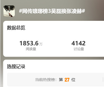 3月12日,有讯息称《琅琊榜3》气势有变动,吴磊将会被换成张凌赫,此事激发网友热议,词条“网传琅琊榜3吴磊换张凌赫”登上微博热搜榜。