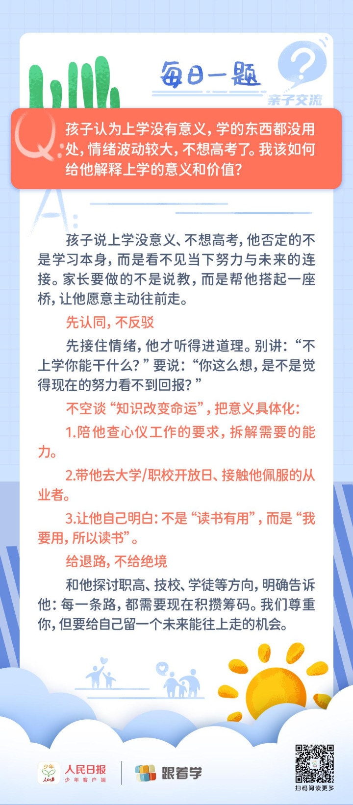 快乐飞艇app 逐日一题丨家长若何给孩子阐明上学的意旨和价值?