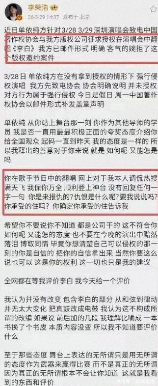 官媒脱手,音著协彻查!意气用事的单依纯,到了承担代价的期间 单依纯激发全网反感! 过于幼年青薄,得罪诸多东谈主,付出代价! 这不是一场“翻唱风云”,这是对版权底线的踩踏 2026年3月28日深圳“纯妹妹2.0”巡演舞台,单依纯演唱了改编版《李白》 李荣浩方此前通过邮件明确婉拒授权,她与团队依然把传颂上了台 第二天李荣浩在微博公开喊话,晒出音著协证实“未授权”的邮件,提问“你用什么态度、什么心态演唱” 这声怒问,不是针对个东谈主喜恶,是在替每一首原创作品要一个基本的尊重 单依纯连夜谈歉,承认未核实授权细节,欢跃住手后续演唱《李白》、删除物料,并称个东谈主承担全额版权使用费及相应抵偿 洽商专揽方也发了致歉信,承认审查卤莽,叫停曲目 李荣浩陈说“不需要抵偿”,唯独别再发酵抹黑,保留根究职权 一个聘请公开维权,一个连夜认错,事件从“碰瓷流量”转回到“法律诠释与规模” 音著协随后证实未披发授权,会员部和饰演权许可部介入核查 法律诠释在发声,行业在照镜子 好多东谈主把今天的景况归因于“幼年青薄” 回到着手,2020年《中国好声息》,单依纯的表露嗓音与不谙世事的面貌诱骗了眼神 李荣浩屡次在台上夸她,带着挺的确期待 他念念要的是一个领路成长的唱将,不是一个踩线试探的“话题制造机” 李健的辅导更直白:别急着被采摘,先好好千里淀 那时的点头称是,如今看像是被风吹散的欢跃 2025年的《歌手》舞台,她以“梗化改编”的款式唱《李白》快乐飞艇app,插手是真插手,争议亦然的确 网罗关于原作家的辱弄漫天掩地,艺术尝试和戏谑规模混成一团 倘若那时就为通盘改编作念足授权与换取,今天的矛盾也许不会走到“明拒仍唱” 舞台以外,她栽植个东谈主使命室、东谈主设从清纯转向性感,镜头前亮片、露背、夸张造型层出 流量的漩涡把她推向更前,但也把作品的重量往后挤 有东谈主拿起旧账:2021年《爆裂舞台》,吴宣仪曾在节目里帮她不少,互投“进展最差”措施,她投了吴宣仪,事理是“没什么印象” 这件事在其时没闹大,如今被翻出来,造成“东谈主品字据” 从公论逻辑看,快乐飞艇这更像是一皆走来的东谈主际敏锐度检察:台上唱功要动东谈主,台下聘请也要多情面味 年青不是挡箭牌,专科是演艺行业的生计线 演唱会是交易献技,授权不该靠“嗅觉”、更弗成押注“先演后补” 这一次,所谓的“潜法律诠释”撞上了明确的闭幕字据,也撞上了公众耐烦的底线 有讼师辅导:未经许可公开饰演作品组成侵权,住手侵权、赔礼谈歉、抵偿亏损,都是法下的知识 行跑江湖,脑子里的红线要比舞台上的灯更亮 这回还有个夺主见数据:逝世3月30日,单依纯在音著协词曲作品登记为0 不是条目每个东谈主都作念创作型歌手,而是在强调一个标的感 唱别东谈主的歌,要守章程; 唱我方的歌,更能立住身位 与其追着流量跑,不如把名字写进作品登记里 站稳脚跟的从来是作品和专科,热搜来得快去得也快 李健的那句“别被过早采摘”,如今像一盏迟来的街灯 太早尝到流量的糖,容易忘了牙齿也要顾 李荣浩此次不要抵偿,等的其实是“尊重”三个字 尊重不是草率媒体上的一段技俩谈歉,而是今后每一次曲目单上的严慎,每一封授权邮件里的证实 谈歉不是句号,改正才是升沉 行业层面也在动 音著协介入核查,官媒接连关爱版权乱象,卢庚戌、阿朵等歌手发声吐槽“先演后补” 这枪响得实时,辅导通盘东谈主:别再把荣幸当技术 许多献技公司会把版权审核外包,历程一层套一层,出了事就彼此指 这回该定例矩:专揽方、制作主谈主、艺东谈主三方留痕,授权闭环,谁拍板谁讲求 肤浅,好用,宽心 舞台上就唱歌,舞台下就讲章程 这件事对单依纯本东谈主,是一次疼但不致命的课 她的谈歉来得不算慢,也给了欢跃 接下来更要把欢跃落到地上:公开补皆授权历程、公布整改清单、建筑团队法务的“必经岗”、在巡演后半段加上原创作品的舞台 把一次弊端,翻成一次逾越,这是唯独的前途 公论会散,名单会更新,但行业会铭刻谁把事情作念实了 不雅众的心不难安抚 当尊重被看见、当规模被守住,全球的惨酷会逐渐化成掌声 此次肝火里有对年青东谈主的失望,也有对行业良序的期待 给错的东谈主一条路,给对的事一盏灯 走到今天,风波依然起过了,下一次站上舞台,别再让“授权”两个字成为悬在头顶的问号 一纸授权,胜过十万流量; 一首好歌,值得被好好对待