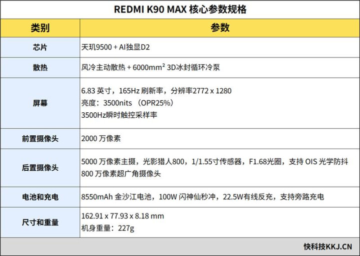 参数表格 · REDMI K90 MAX中枢参数规格汇总表